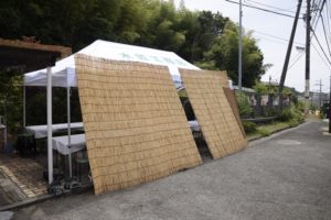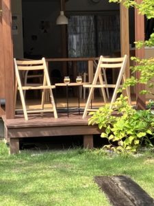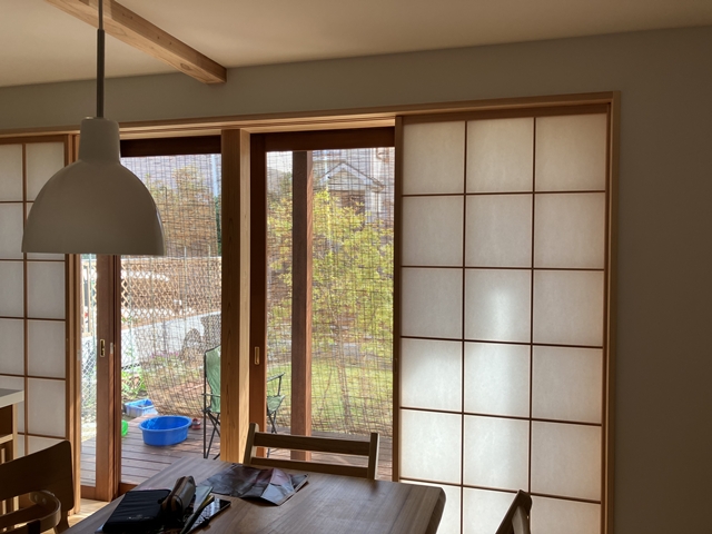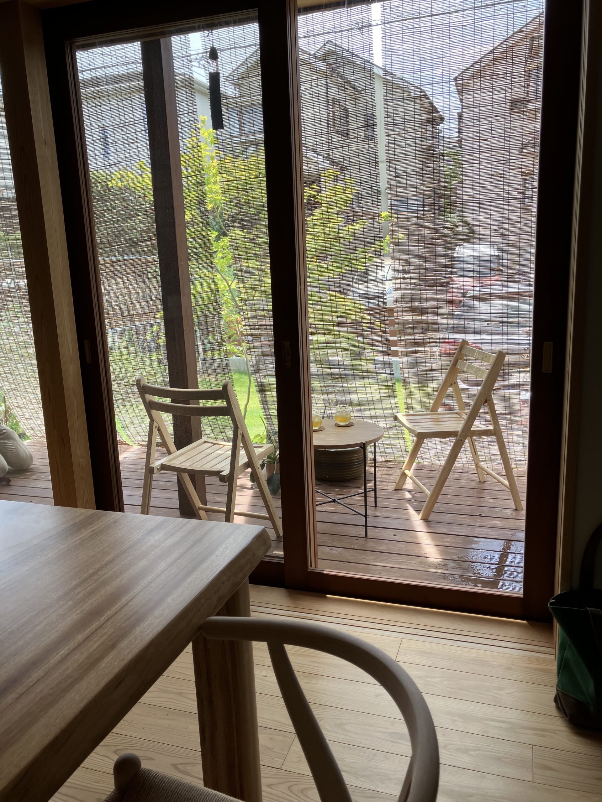 (↑↑ ウッドデッキの外側にすだれがかけてあります)