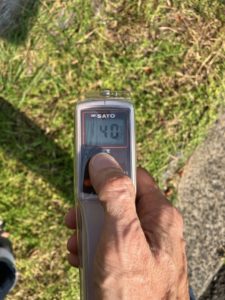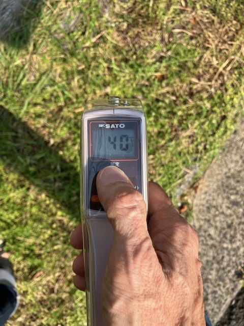 ↓↓ 日なたの芝の上の表面温度は、40℃。