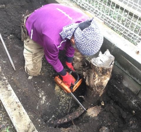 夏休みに庭の切り株を自力で掘り起こし、途中で断念していましたが、 今日、百水庭園の小林さん...
