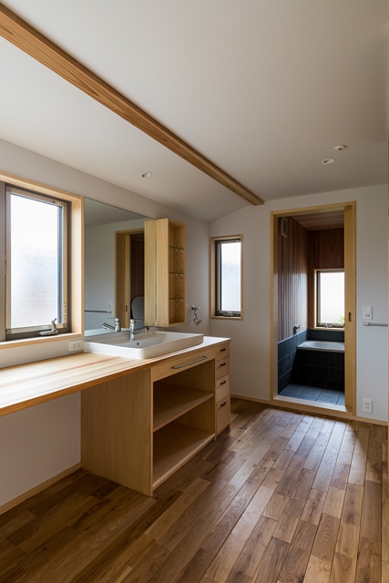 個室の充実よりも、みんなで使う洗面・脱衣室の充実を考えた住まいです。