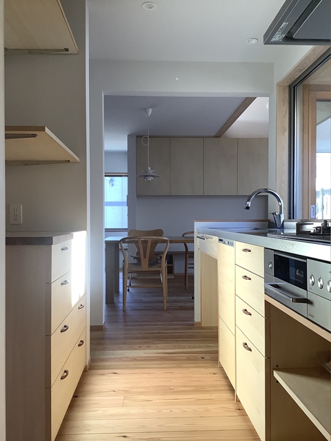 家族を正面に見て会話をしながら、流しでの作業ができますね、