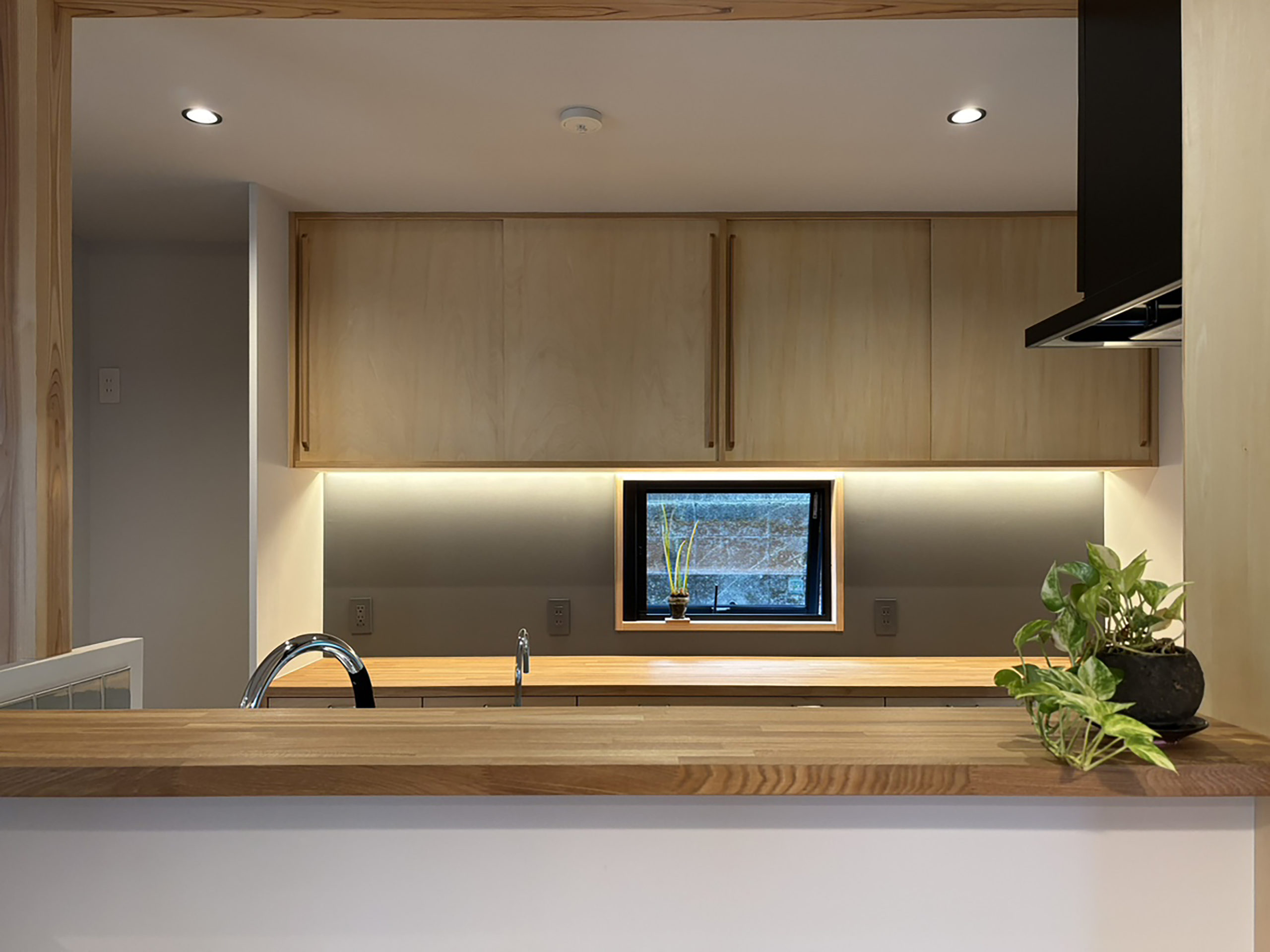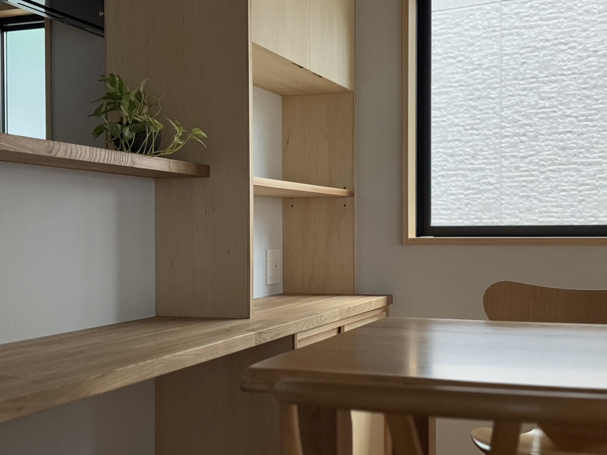 さらに収納をひとまとめにし、食事や家事の動きに合わせて「とりあえず置ける」「すぐ片付く」が叶う小さな余白を設けました。