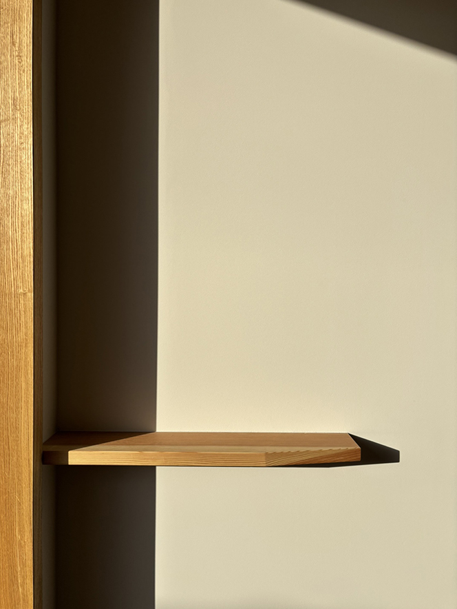 斜めに配置したことで室内に入る光は一日を通して表情を変え、時間の流れを静かに感じることができます。