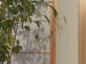 植物の影が障子に揺れるとき、人工の光でありながらもどこか自然の気配を感じさせてくれます。