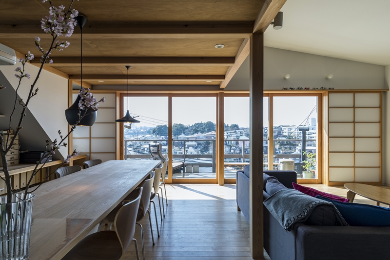 この見晴らしを取り込むためには、かなりの崖地対策を施さないと家は建ちません。しかし、今となってはそんな事は小さな苦労話。ご家族のお人柄もあいまって、気持ちのいい暮らしが始まっています。