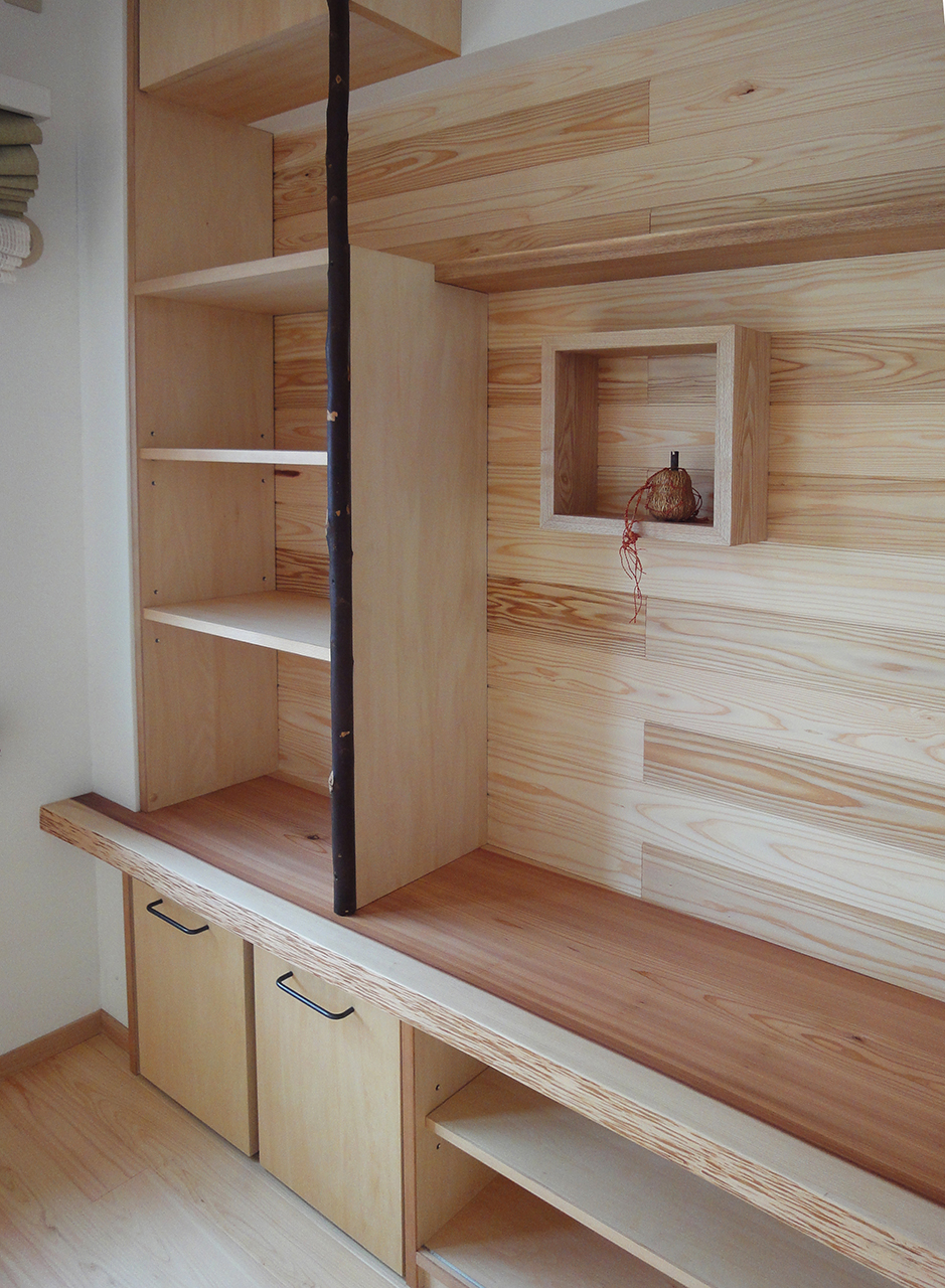 味気ないマンションの一角に無垢の木のぬくもりのあるコーナーをつくる